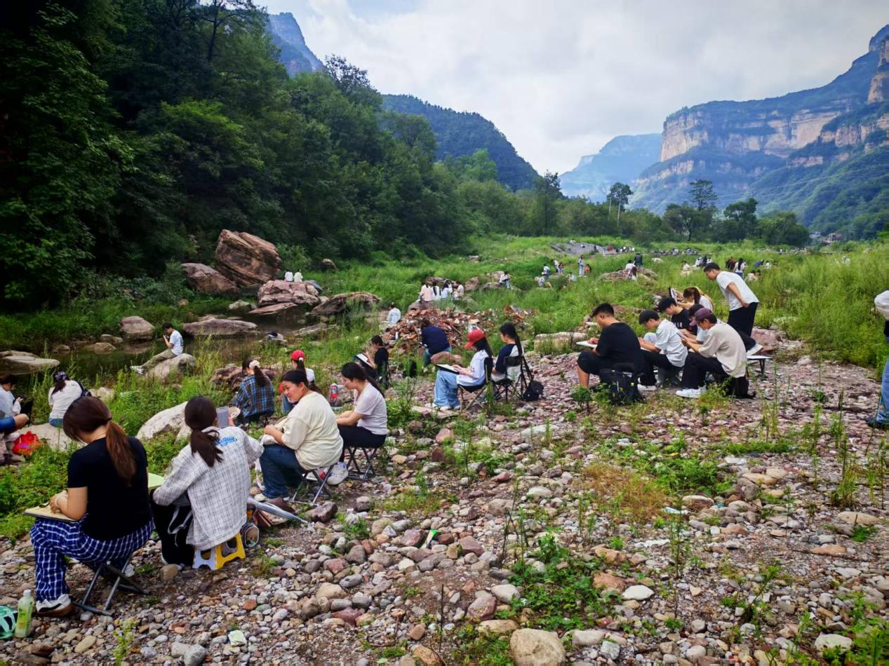 河南省林州市太行山写生基地,是集自然风光与人文景观为一体的、服务设施完善的艺术采风与写生胜地,同学们在这里描绘大好河山、勾勒农家小院、感知民风民俗、凝练艺术气息、增长艺术水平,对未来的艺术学习和创作有着重要作用。