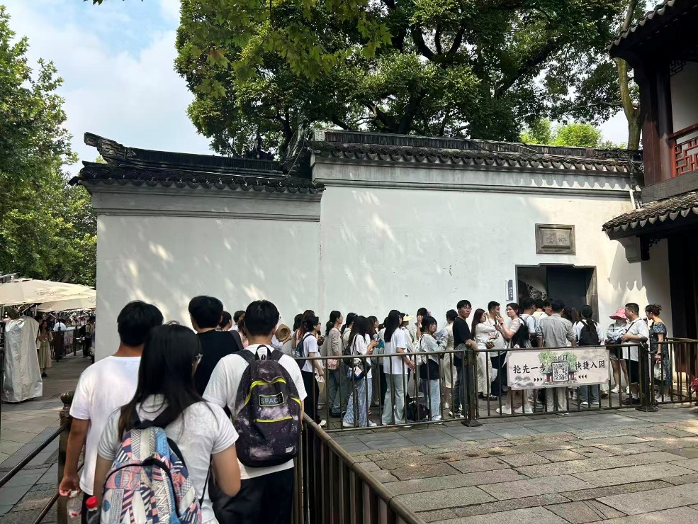 学生有序排队进入拙政园