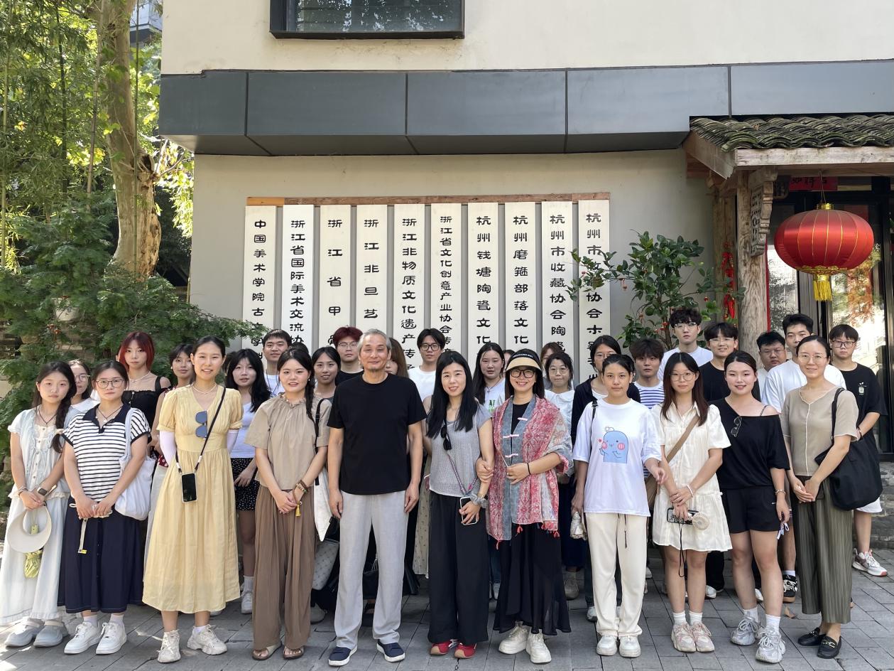在南京博物馆,师生重点研习馆藏文物衍生文创产品开发案例,直观领悟专业实践路径;杭州行中,团队深入自然造物民艺研究中心及中国美术学院,通过非遗文创专题讲座与"靳埭强创意六十年展""乡村手工艺振兴案例展"观摩,系统掌握传统手工艺创新转化方法,提升传统文化元素现代设计应用能力。