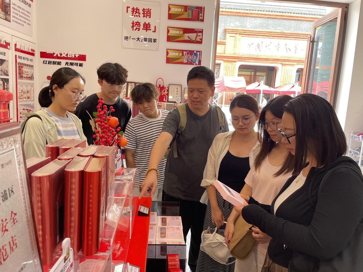 视传教师给学生进行红色主题文创讲解