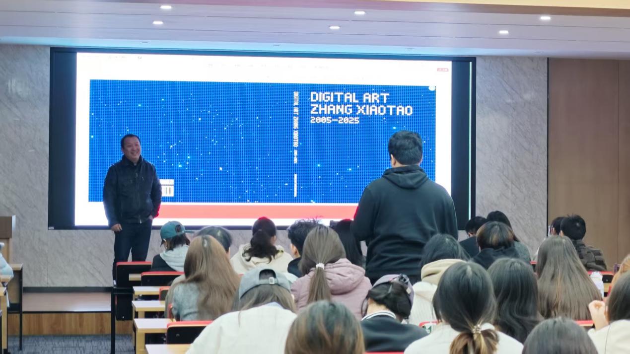 临近尾声,现场互动氛围热烈。教师代表结合教学与研究实际,与张小涛展开提问对话;学生们也踊跃参与,积极提出自己在数字艺术学习与创作中遇到的困惑与思考,张小涛耐心细致地一一回应,现场思想碰撞不断。